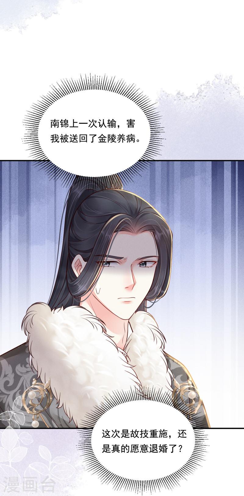 集团千金意外死亡穿越到架空古代首富南府嫡女南锦身上,女主帮原主报复了负心狗男女后刚打算躺平享受挥金如土的人生,却又被指婚给戍南王府的养子孟山策,女主不想嫁,戍南王府的世子孟天枢也不想让女主嫁,双方都想让对方主动提出退婚,开始了鸡飞狗跳的无休止斗智斗勇……