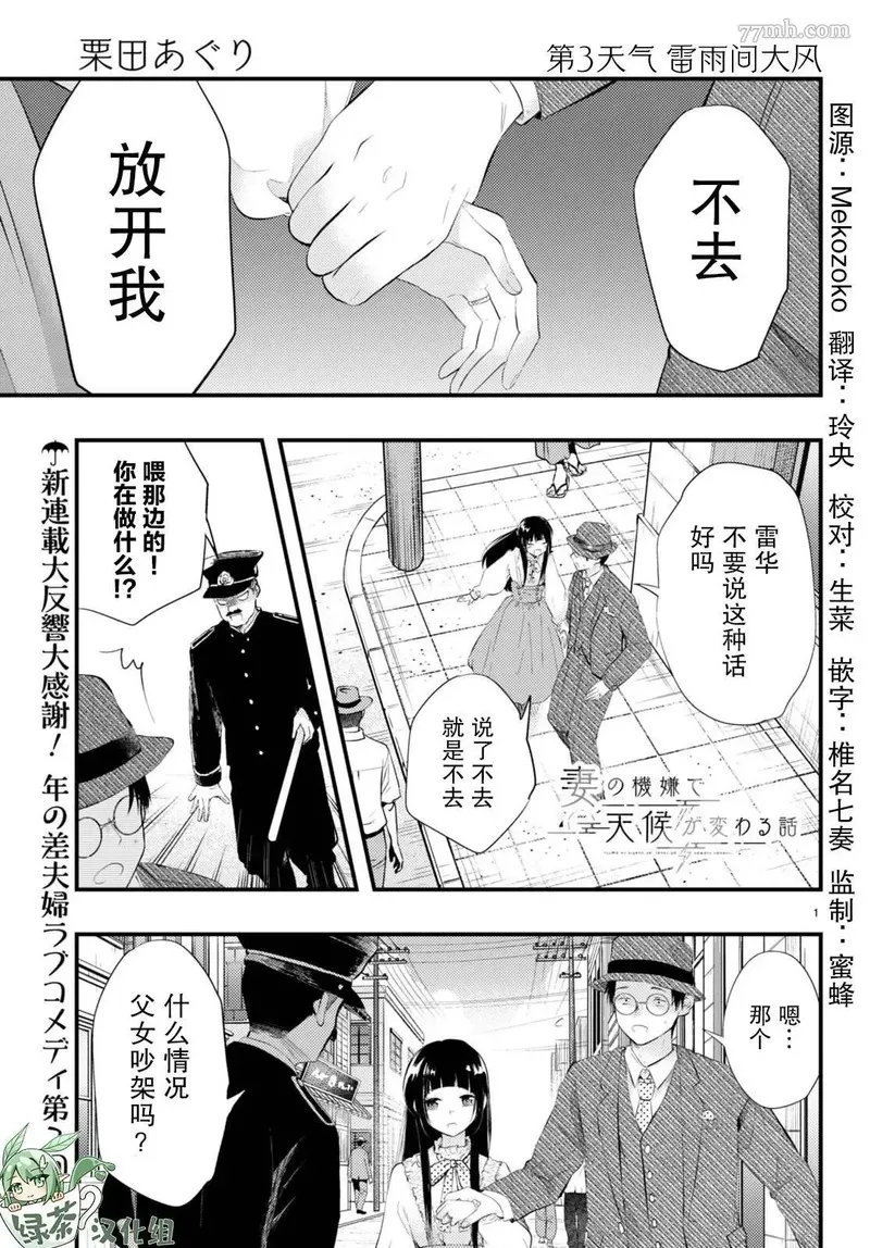 妻子的心情会反映到天气上的故事又名妻の机嫌で天候が変わる话,类型为恋爱生活|魔法奇幻的高人气漫画,漫画简介:又名:妻の机嫌で天候が変わる话 昭和初期一对年龄差夫妇的甜蜜日常。妻子的心情会反映在天气上?凡人丈夫与雷神妻子之间的稍微有些奇怪的爱情喜剧。