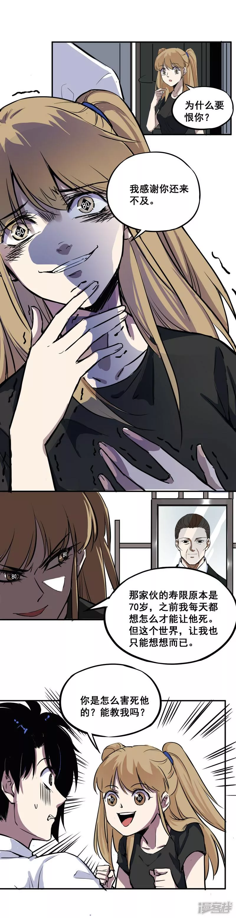 十万分之一的讨厌又名,类型为校园|架空|悬疑的高人气漫画,漫画简介:近未来世界,每个人的寿命在刚出生的时候就被确定了,而且彼此能够通过对方的瞳孔看到对方的寿限,然而一个人对着镜子却是看不到自己寿限的。由于寿限已定,人们即使受到非常严重的伤害也绝不会死亡。但是,这样安详...